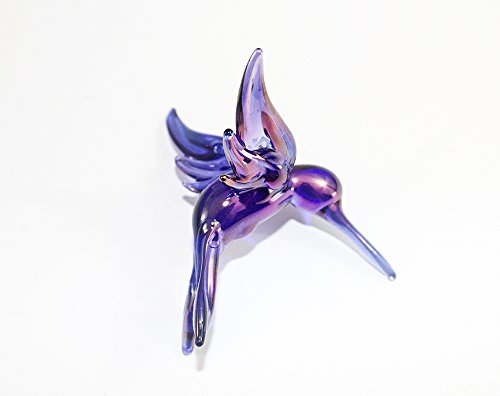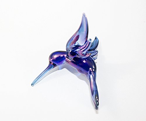 Hummingbird Lampwork Glass Ornament - Blue Carnival