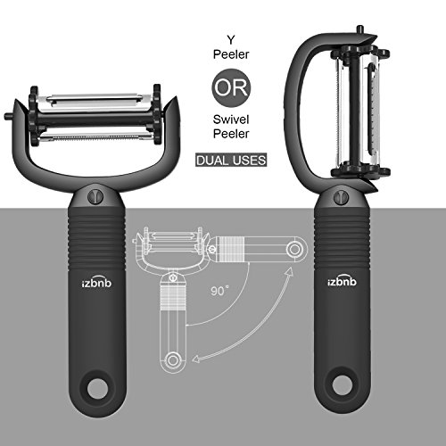 HANDLE IS COMFORTABLE:Dual Uses of swivel peeler and Y peeler , handle is comfortable even during repetitive action of peeling.