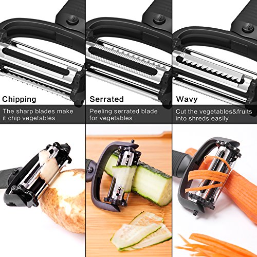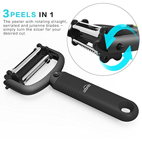 3 PEELS IN 1 : The peeler with rotating straight, serrated and julienne blades - simply turn the slicer for your desired cut.