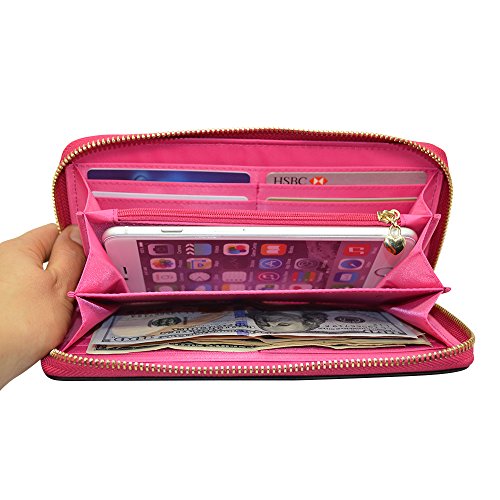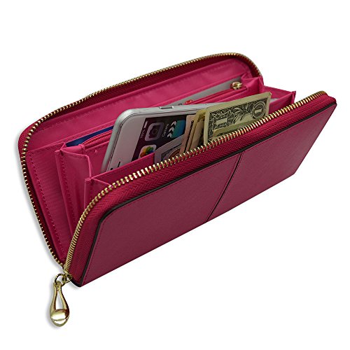 - Feature : 1. Material: Pure handmade with genuine Saffiano leather outside with minimalism style, inside: high density fiber / 2. Fits most smartphones, including: Apple iPhone 6Plus, 6, 5S 5C 5 4S 4, Samsung Galaxy S5 S4 S3, Google Nexus 5, LG G2, HTC One M7, Sony Xperia Z, Moto X, Moto G, Droid Razr. / 3. Wallet: 12 Card Slots, one cash slot and with a separate compartment for paper receipts', business cards etc. and a coin purse with zip up closure / 4. Zipper opening/closing makes access to your phone and cards convenient while keeping everything safely inside / 5. Approximate phone compartment in the middle dimensions: Fits any phone up to 6.3" X 3.1" X 0.5" inches (Width x Height x Depth in inches)&Pls note: if you use the phone with a case, it should be a slim case.