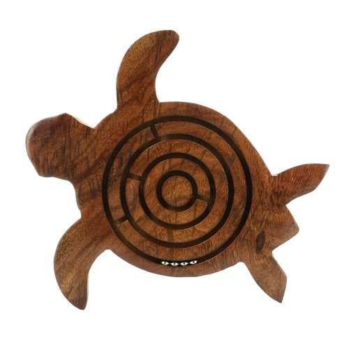 Studio : ShalinCraft Publisher : ShalinCraft Binding : Kitchen Product Description In 1889, Charles Martin Crandall unveiled a game that he called Pigs in Clover that went on to take the United States and then the rest of the world by storm. Our Handmade Wooden Turtle Labyrinth Maze Toy was inspired by Crandall's beautiful handcrafted toys for adults and children and is designed to make a handsome decoration for the home that is also an enjoyable activity for people of all ages. Handmade in India, our Wooden Turtle Labyrinth Maze Toy features high quality natural wood construction. The center of the turtle is carved to create a challenging labyrinth layout, and there are four silver balls included with the toy. To win this one-person game, the turtle must be tilted, rocked and shifted to roll the balls through the maze. The game is challenging no matter how many times it is played, making it an activity that can be enjoyed again and again. With its unique shape and rich natural wood color, the Handmade Wooden Turtle Labyrinth Maze Toy makes a wonderful decoration for a game room or a den. You can keep it within easy reach on the coffee table or end table and invite guests to try their hand at winning the game. The turtle maze measures 5.5 inches by 5.5 inches in size and weighs just 3.8 ounces. Our Handmade Wooden Turtle Labyrinth Maze Toy is perfect for anyone looking for unique gifts for kids and teens. The small size of the maze toy makes it easy for little hands to grasp, and any child will love trying to win the game. Labyrinth games teach problem-solving and critical thinking skills and help to build fine motor strength and manual dexterity, making them as beneficial for children as they are fun. This maze toy is durably crafted and can stand up to frequent play. It's a great toy to have along on long car trips, on plane rides and when dining out in restaurants because it can keep little ones occupied for hours. 0 |