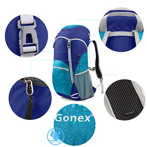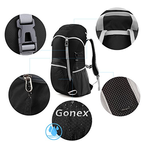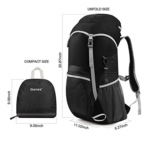 -. Binding : Misc. -. Brand : Gonex -. Feature : Made with water and tear resistant nylon,well constructed seams. Super lightweight but sturdy. / 40L Large Capacity: There are several compartments (big & small) which are used to store and carry your items comfortably. Two nylon mesh pockets in both sides are used to store water bottle and umbrella. / Large Main pocket and a nice upper outside pocket for phone. Breathable mesh shoulder straps design release the stress from the shoulder and make your journey more comfortable and relax. Easy to adjust the length and lock firmly. / Lightweight and Roomy: For weekend travel, makes for getting around town much easier than with traditional lage. / A really space saver: You can transform it to a compact purse-like hand bag. It can be folded into zippered inner pocket to fit anywhere while unfolding from pockets for storage and organization. -. IsAutographed : 0 -. IsMemorabilia : 0 -. Label : Gonex -. Manufacturer : Gonex -. ProductGroup : Sports -. ProductTypeName : SPORTING_GOODS -. Publisher : Gonex -. Studio : Gonex -. Title : Gonex 40L Backpack Packable Backpack Lightweight Foldable Daypack for Travel Hiking Water Resistant