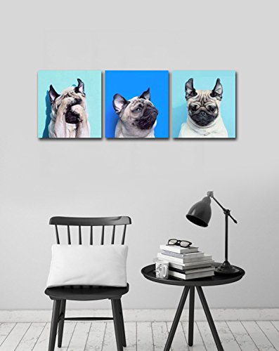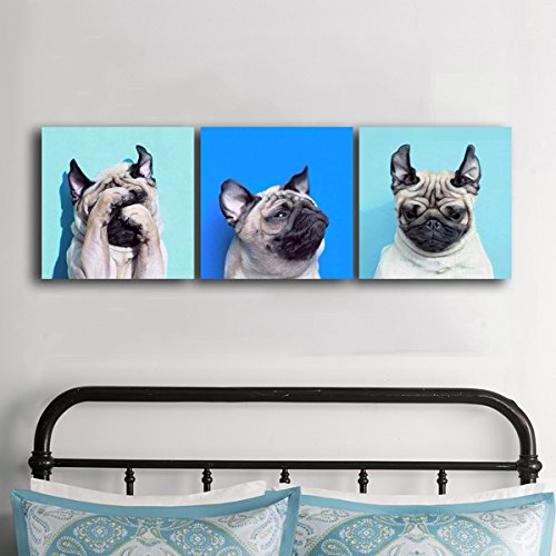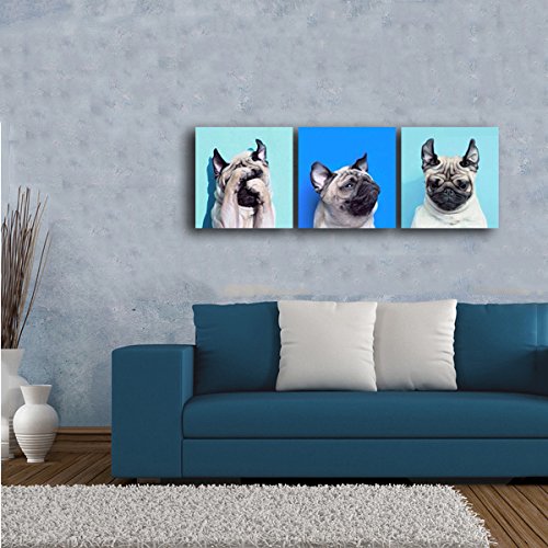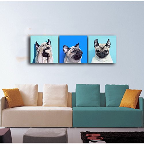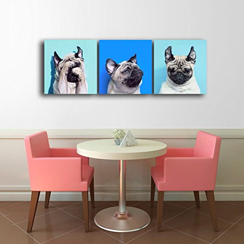 -. Title : Gardenia Art - Animal World Series 13 Pug Puppy Modern Canvas Wall Art Paintings Puppy Blue Artwork for Bedroom Living Room Decoration,12x12 inch per piece, 3 pieces per set, Stretched and Framed