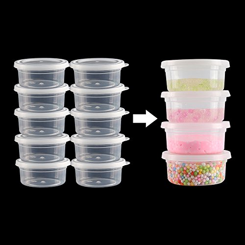 - Clear Slime containers: Made of recyclable PP, environmentally friendly, safe and non-toxic, drop resistance and anti-extrusion, can prevent air from entering and leaking, no leaks or drips, tight seal, increase the viscosity, you can neatly organize various colors of slime, slime beads, foam balls for maximum freshness, allow you to label and see all your slime
