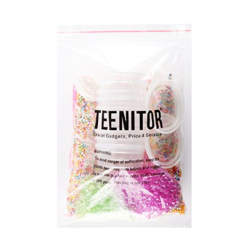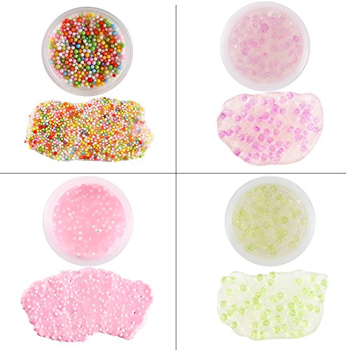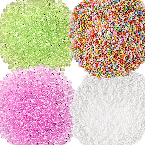- Foam beads: the beads range from 0.1 to 0.18 inch, are colorful, lightweight, smooth, buoyant and hard to crush, less flaky, affordable, they are the best friend for slime, stick to slime and will not dye