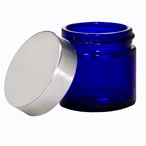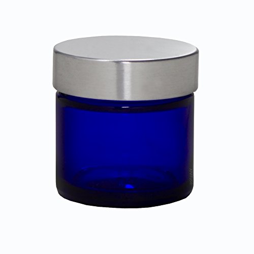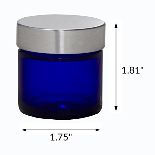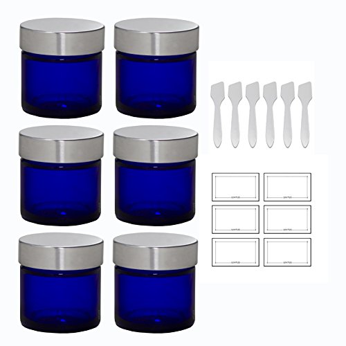 Cobalt Blue Thick Glass Straight Sided Jar with Silver Metal Lid - 1 oz / 30 ml (6 pack) + Spatulas and Labels