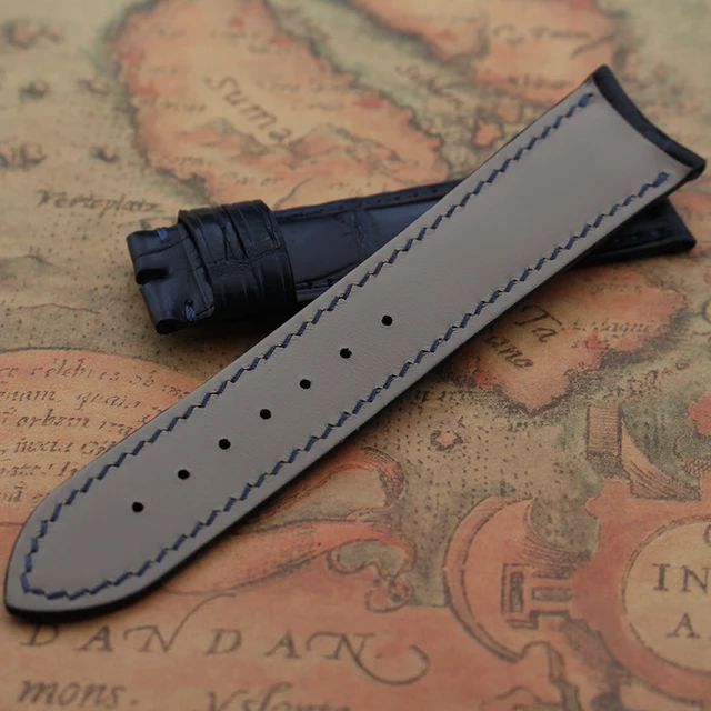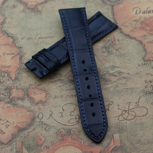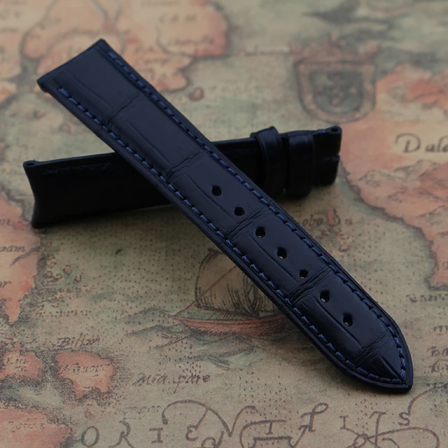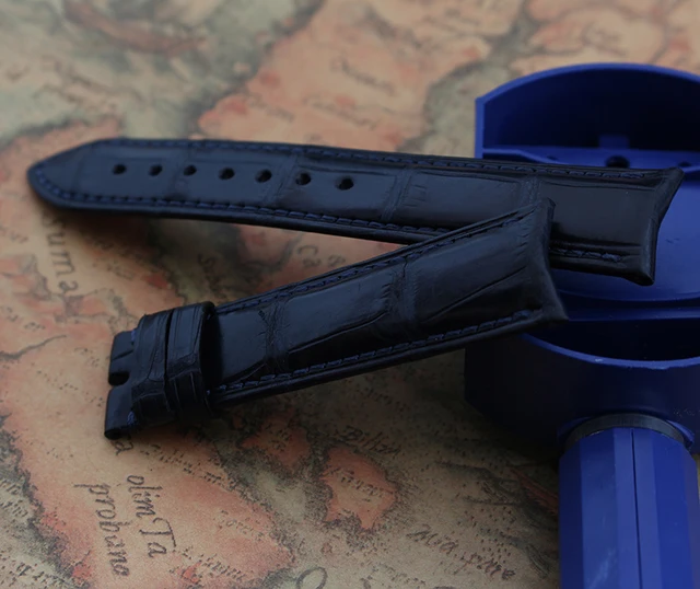 | [해외] 19 미리메터 20 미리메터 22 미리메터 Customed 악어 가죽 손목 팔찌 다크 블루 악어 가죽 스트랩 남성 수제 사용자 정의 곡선 엔드 |