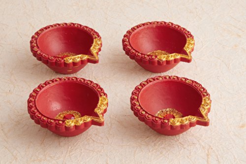Set of 4 Handmade Earthen clay Diya for Diwali Decoration (4)