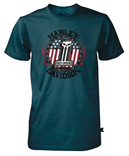 Studio : Bravado Publisher : Bravado Binding : Apparel Product Description Harley-Davidson® Men's Black Label Patriotic #1 Skull Short Sleeve T-Shirt, 30293313. Front features an awesome American Flag flaming #1 Skull screen printed graphic, with great looking Harley-Davidson® script. Made of extremely soft 100% cotton. Features a small printed logo on back of neck. This Black Label tee is a fitted design, a slimmer cut that fits closer to the body. If you like a more relaxed fit we recommend you order a size up. 0