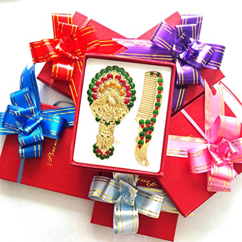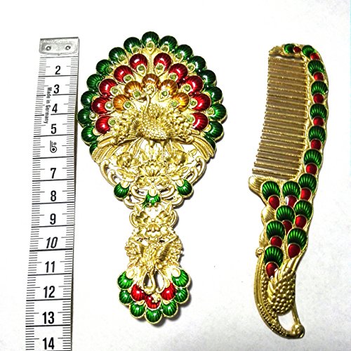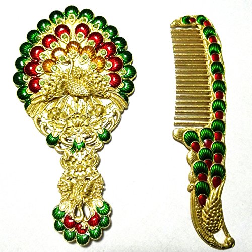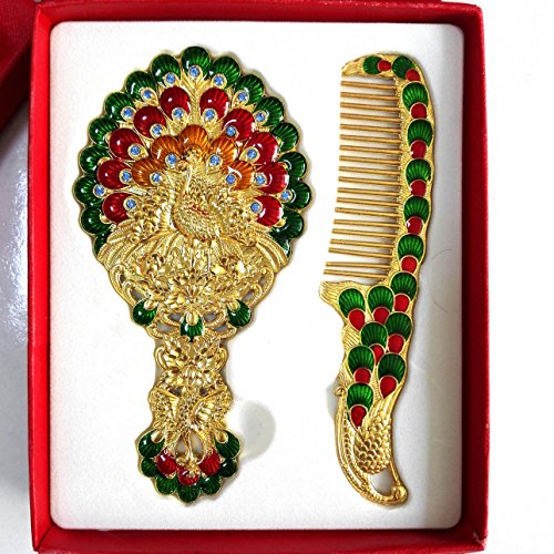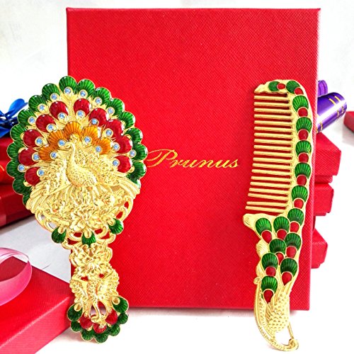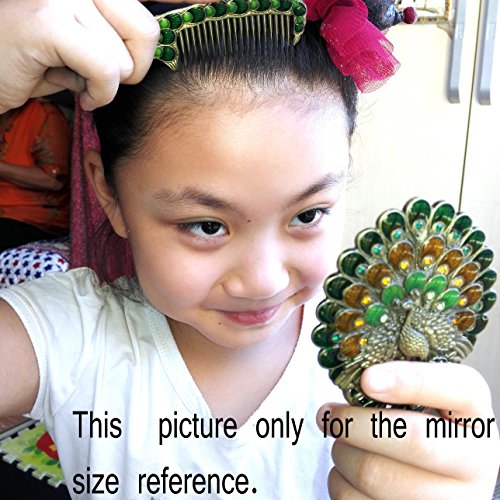 Prunus Smaller Handheld Mirror in Peacock Design with Comb for Birthday Gift and Christmas Prensent to Little Girls (Yellow)