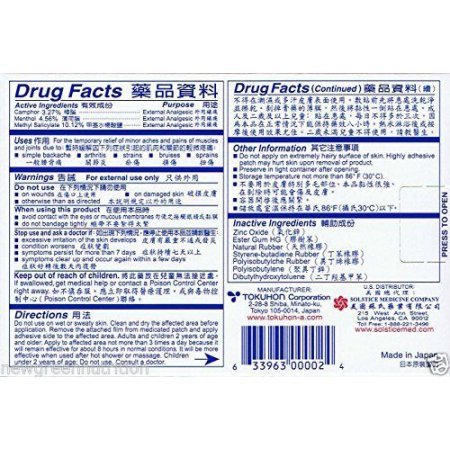 -. Title : TOKUHON A Pain Relief Patches, 40 Pieces, 1 Count