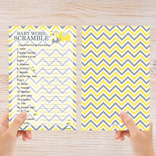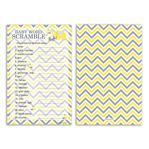 Yellow Elephant Unisex Baby Shower - Word Scramble Game Cards (20 Count)