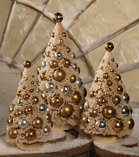 Bethany Lowe Christmas Romantic Bottle Brush Trees Gold and Silver LG0742