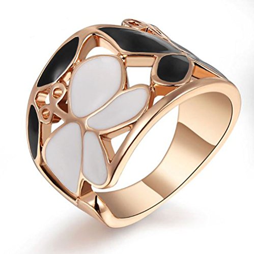 -. Title : バタフライ デザイン リング 18金RGP ピンクゴールド レディース ジュエリー ブラック ホワイト エナメル 指輪