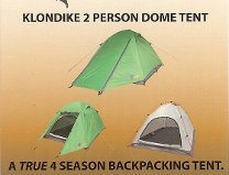 Studio : Moose Country Gear Publisher : Moose Country Gear Binding : Sports Product Description This is the ULTIMATE 4 season backpacking tent, with new features for 2014. Nothing compares to these features or quality in this price range. This tent has been tested in 60 MPH winds - no problems; this has been tested with more than 2 feet of snow fall - no problems, this has been tested in a super-heavy rain storm - no problem, this has been tested in Joshua Tree National Park in 110 degree heat - no problem (but it was hot) and tested in -20F in the Sierras - no problem. Specs: full pack weight is 6 pounds, 11.8 ounces. The pack size is 15.75" X 6.25" and it CAN be rolled to fit back in the heavy-duty carry bag. The poles are 7000 Series Aluminum - 7.9mm diameter, the best YKK zippers are used, ventilation mesh have velcro covers, useable interior floor area is 84" X 61", bathtub floor of 2000 mm Polyester Oxford with taped AND no wick welded seams. Plenty of tie downs, roof vent, breathable materials, comfortable compared to just about every tent on the market. BUY 5 Klondike Tents, Receive a 6th FREE! Moose Country Gear, this manufacturer, is for the serious outdoorsman. THIS IS THE BEST VALUE IN THIS PRICE RANGE . 0