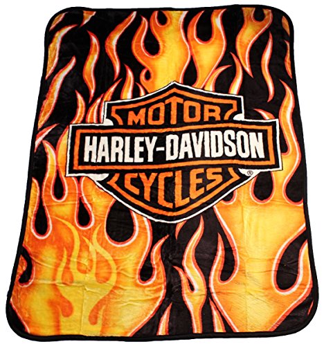 Harley-Davidson Flames Soft Raschel Throw Blanket Twin/Full Size 60 inch x 80 inch