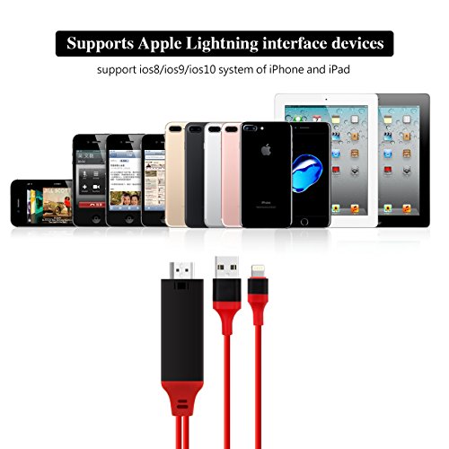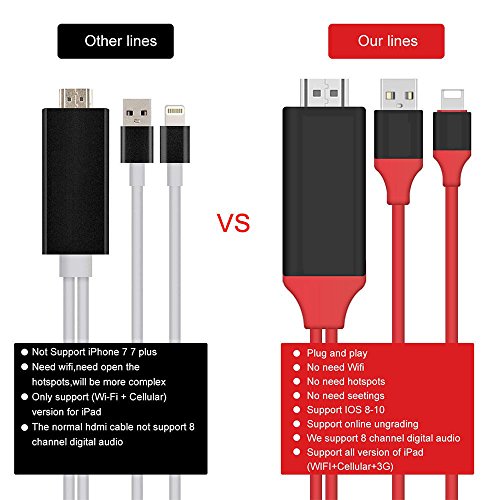 Studio : XSMNER Publisher : XSMNER Binding : Electronics Product Description This Lightning to HDTV HDMI AV Cable Adapter is compatible with iPad 4/Mini/Air,iPhone 7/7 Plus,iPhone 6/6 Plus/6s/6s Plus,iPhone 5/5c/5s,iPod Touch 5. NOT COMPATIBLE WITH NETFLIX Due to copyright protection measures, you may not use multi-screen mirroring with some paid contents in Netflix, Prime (video only) hulu and other copyright contents, please refer to the terms and conditions of those apps. HOT LIGHTS: Plug and play; no need Wifi; no need hotspots; no need settings; support IOS 8.0 or above; support online ungrading; Support 8 Channels digital audio; Support all version of ipad; Support Airplay/Mirroring; 8 Pin to HDMI HDTV AV Adapter Cable For iPhone 7/7 Plus/6S/6S Plus/6/6 Plus/5S/5/5C Airplay Mirror HDMI adapter for iPhone / iPad featuring the lighting connector,which can be used with iPhone to enjoy your favorite locator online entertainment easily on your HDTV or projector in up to 1080p HD display-movies,TV shows,music,video,audio,photo and more from YouTube,IE brwose,Chrome browser and etc. Enjoy happiness not only yourself but also with your family or friends together on your big HDTV or projector! Everything you love,no need on your TV or projector,just need this adapter to connect iPhone or iPad with HDTV, then it can be able to cast the phone's screen to HDTV. Remarks: 1.This Lightning to HDTV HDMI AV Cable Adapter is only for IOS8.0 or above Feature: 2.100% brand new and high quality 3.Color: Black Red. 4.Cable Length: 200cm 5.Compatible with iPad 4/Mini/Air,iPhone 7/7 Plus,iPhone 6/6 Plus/6s/6s Plus,iPhone 5/5c/5s,iPod Touch 5. User guide: Plug 8 pin lightning to iPhone,than connect HDMI to HDTV's HDMI port. No need settings and now it is ready to play. Package: 1*Lightning to HDTV HDMI AV Cable Adapter 1*Retail box