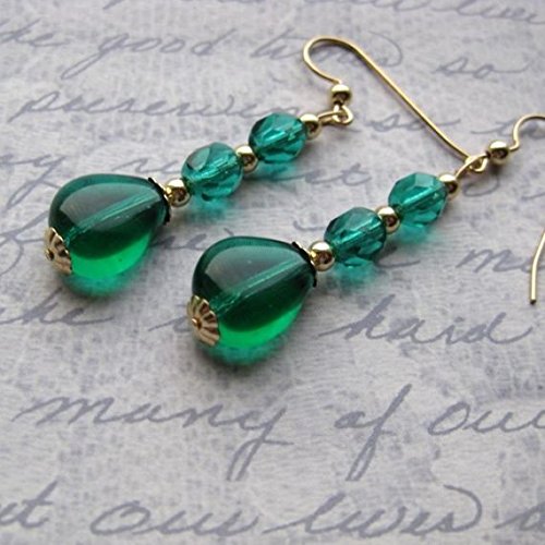 -. Title : 14kt gold filled earrings with emerald green crystals