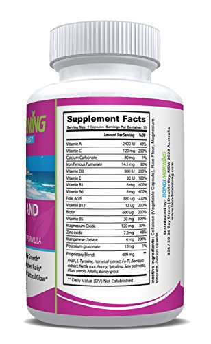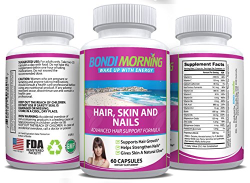 -. Feature : PROMOTE HAIR, SKIN & NAIL HEALTH NATURALLY! - Do you want to strengthen you nails, grow healthier hair and give your skin a natural glow? The Bondi Morning Hair, Skin & Nails premium dietary supplement is here to make your life easier and your hair 100% stronger! / THICKER, SHINIER & HEALTHIER HAIR! - Our healthy and 100% natural dietary supplement contains Biotin, which plays a vital role in hair growth, since it helps hair grow faster, protects against dryness, increases hair elasticity and prevents breakage. / 100% NATURAL INGREDIENTS FOR STRONGER NAILS & FIRMER SKIN! - Enriched with Vitamins like Vitamin B6, Folic Acid and active Minerals, such as Zinc, Calcium, Manganese, Iron and Potassium, the Bondi Morning capsules will help reduce the sings of skin aging and strengthen your nails naturally. / NATURE'S MOST POWERFUL VITAMINS IN A SINGLE CONVENIENT CAPSULE! - Perfect for both men and women, the Bondi Morning Hair, Skin & Nails elite dietary supplement will help prevent hair loss, while promoting healthy blood flow to the scalp due to its high content of Vitamins A, D, C, E, B5, B6 & B12! / WAKE UP WITH ENERGY EVERY SINGLE DAY! - The Bondi Morning elite USA-made dietary supplements are produced with great attention to detail in FDA-registered facilities. Our goal is to help you improve your lifestyle and wake up every morning feeling energized and rejuvenated, just like waking up in the heavenly Bondi beach in Australia!