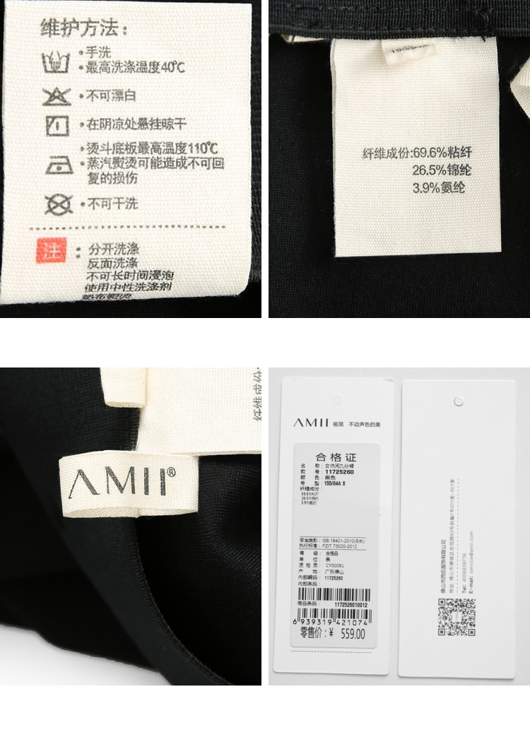 | 面料成分: | 69.6%粘纤、26.5%锦纶、3.9%氨纶 |