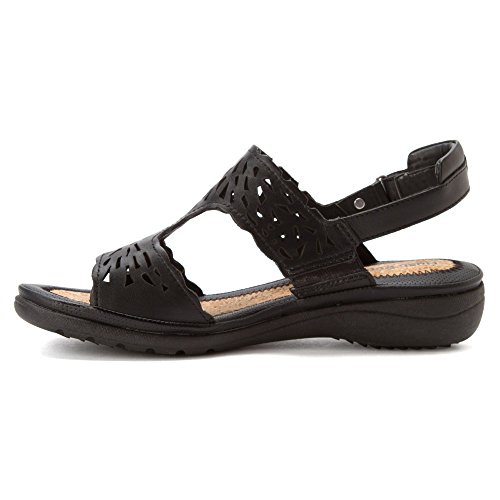 Studio : Hush Puppies Publisher : Hush Puppies Binding : Apparel Product Description A classic sandal design with cut out details for added design, the Regina Keaton t-strap sandal will be a new favorite addition to your summer wardrobe. ? WaveReflex® cobblestone outsole design features reverse action waves made of natural latex rubber for superior flexibility and immediate comfort ? InnersoftTM technology is a true flexible California construction. An EVA midsole with a latex foam insert under the ball of the foot provides flexibility and super-soft cushioning to the footbed ? Full grain leather uppers ? Soft synthetic leather lining ? Comfortable natural cork socklining ? EVA midsole with latex foam insert under the ball of the foot for comfort ? 30 mm (approx. 1 1/4") wedge heel 0