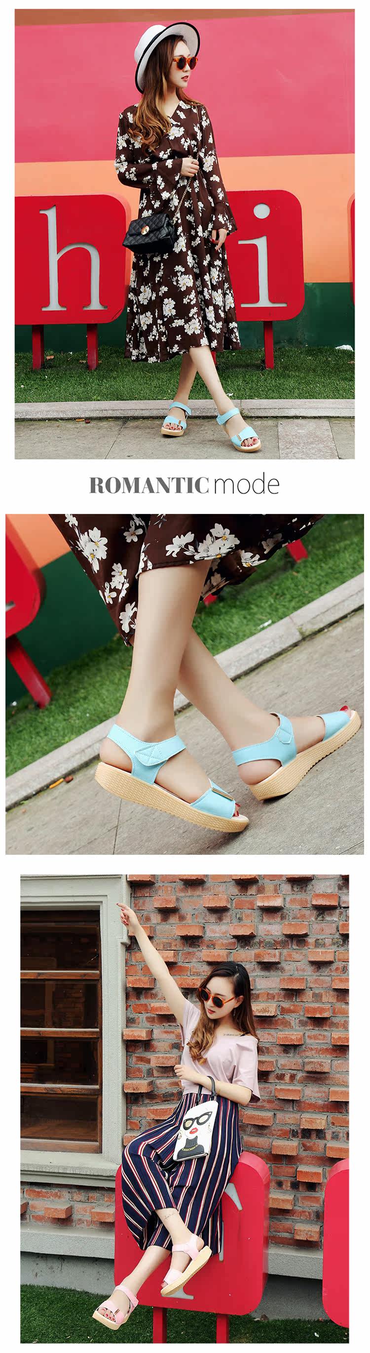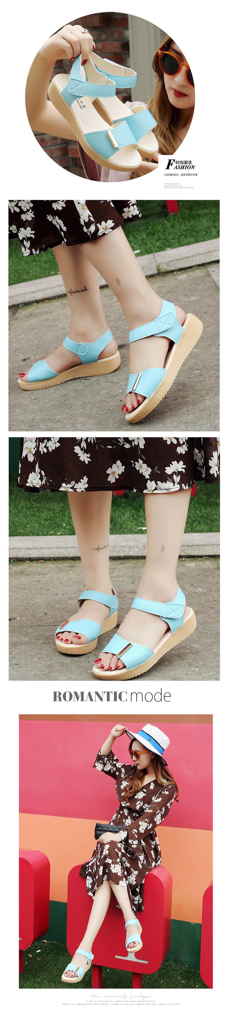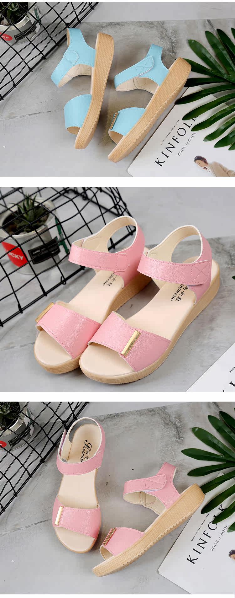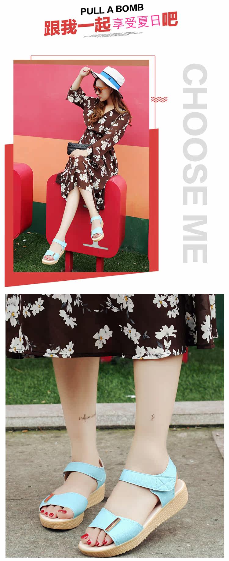 夏季凉鞋子女韩版魔术贴中跟学生运动平底新款罗马厚底沙滩鞋