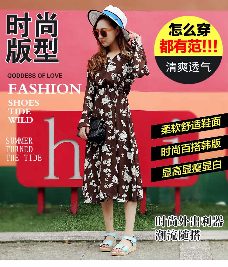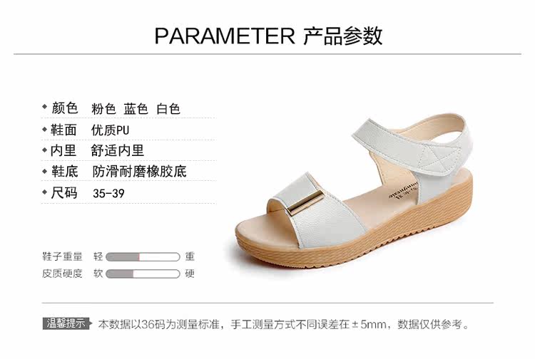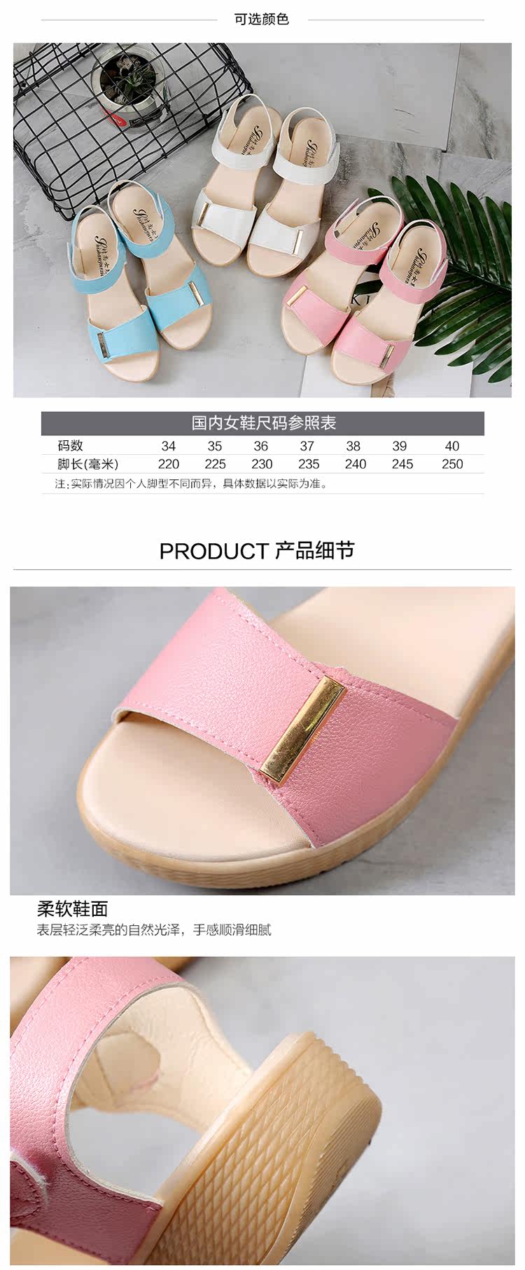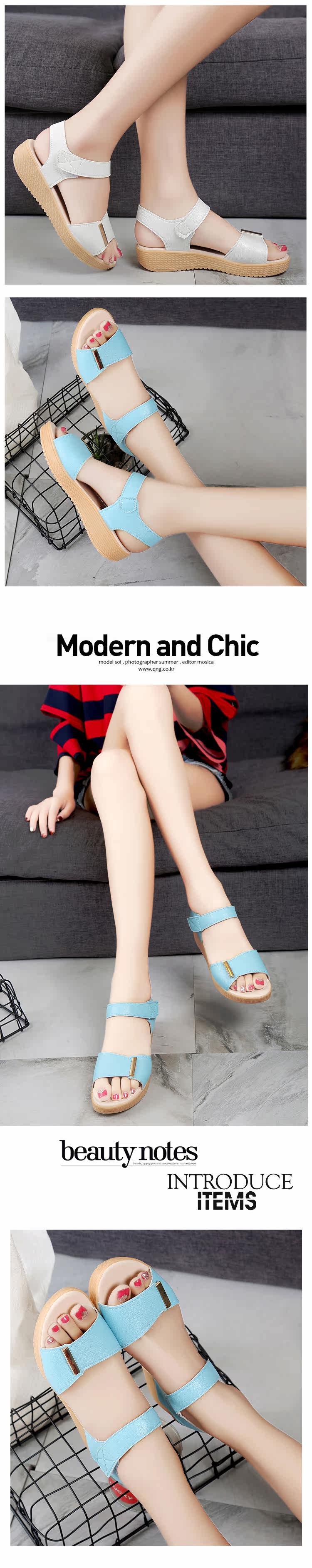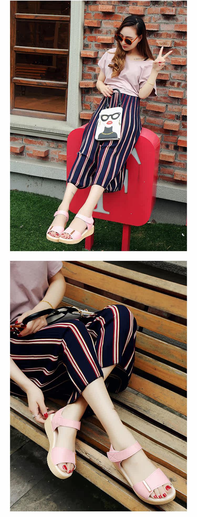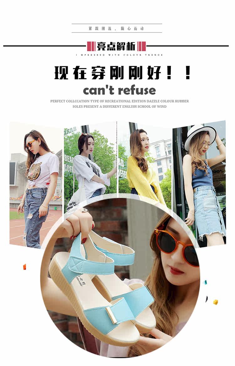 夏季凉鞋子女韩版魔术贴中跟学生运动平底新款罗马厚底沙滩鞋