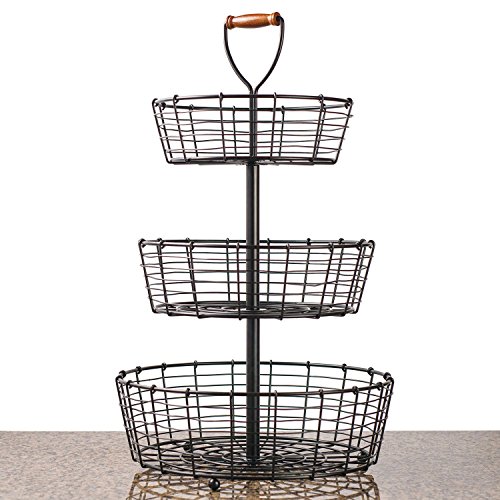 Giftburg 3-Tier Wrought Iron Display Wire Basket, 25.5 Inch Tall