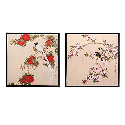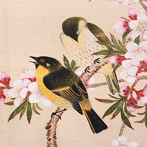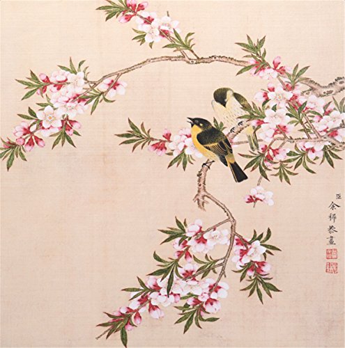 In the painting,there are two birds on the flower branch with a simple composition,which is a delicate brushwork in drawing flying birds showed the artist has a solid grounding sketch.It stands for vitality and strength in spring