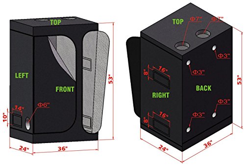 -. Title : Oppolite 36"x24"x53" 48"x36"x72" 2-in-1 Hydroponic Indoor Grow Tent Room Propagation High Reflective 600D Diamond Mylar Growing Plant w/Metal Corner