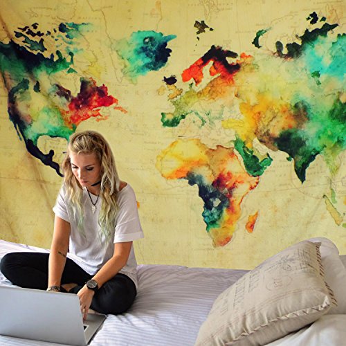 Studio : Sunlightfree Publisher : Sunlightfree Binding : Kitchen Product Description Do you want to add a both retro and stylish feeling to your room? Choosing this aesthetic world map tapestry can promptly change your room from ordinary to extraordinary! 100% Satisfaction Guarantee. Just purchase them with confidence! Descriptions: 1.This map tapestry featuring lively colors is elegant and colorful. Meanwhile it designed on a vintage map of the world must be a noble and valuable addition to decorate your room and grace your home. 2.With stylish designs and well made craftsmanship, this map tapestry can be used as Home Decor, Dorm Decor, Sofa Cover, Tablecloth, Beach Cover, Picnic Sheet, Headboard, Curtain, Bed Cover and of course as a Bedroom, Living Room Wall Hanging. 3.This world map tapestry consist retro color, the antique map of the world as background and abstract art design in watercolor. It will be a best choice to take as a gift for children, parents, lover, classmates, friends, holidays, parties, housewarmings and of course birthdays.
