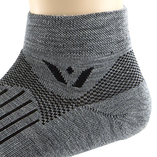 -. Feature : Thick Footbed Cushion | Medium Compression | 3 Point Arch Support / Merino Wool (sourced from Montana) | T-66 Nylon | 200 Needle Construction / Managed Compression | Blister-Free | Moisture Wicking | Antimicrobial / No Dyes | Chemical-Free Wicking / Made in the USA