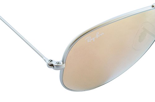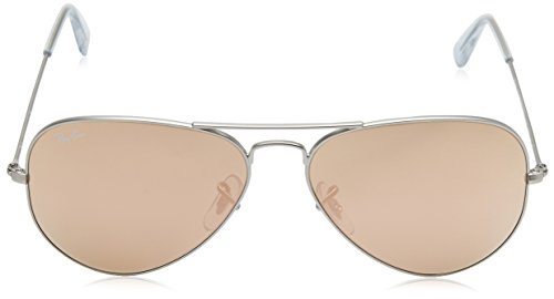 -. Title : Ray-Ban Sunglasses - RB3025 Aviator Large Metal / Frame: Matte Silver Lens: Brown Mirror Pink (58)