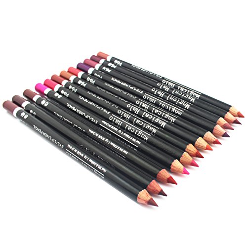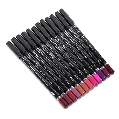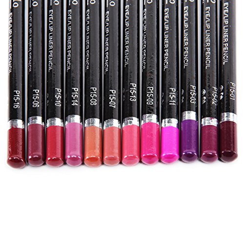 12 travel size hot color lip liner pencils (5.9 inch long).