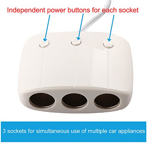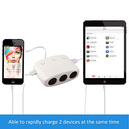 - Feature : Three 12V / 24V cigarette lighter sockets (DC outlets) with independent power buttons provide a total power of up to 120W, enough for simultaneous use of a variety of portable appliances in your vehicle,like iPhone 6 5S 5C 5 4S 4 iPad 4 3 2 Mini Samsung Galaxy S5, S4, S3, S2, Galaxy Note 3 2; Motorola Droid RAZR MAXX; HTC One X V S and other Android Pad Smartphone / 2 USB charging ports offer a total output of up to 3.1A(2.1A and 1A DC respectively) and can rapidly charge two personal electronic devices simultaneously: iPhones, Android smartphones, GPS's, MP3 players, iPads, tablet computers, etc / Smooth and shiny plastic surface with streamlined appearance makes this car adapter / charger a perfect combination of functionality and aesthetics / Designed with high safety standards: protective circuits and high quality components prevent the product or your devices from overheating or overloading,Compatible With Anker AH430 USB 3.0 4-Port Hub, LigerTM UtechSmart Sabrent Saicoo EZOPower 4-Port USB Hub Car Charger BESTEK Energizer Car Inverter Cobra XRS9570 XRS 9745 Whistler Cr90 XTR-130 Laser Radar Detector / Package included:1*3 Port Car Cigarette Lighter;1*fuse wire for 10A(this product does not include a USB charging cable.)