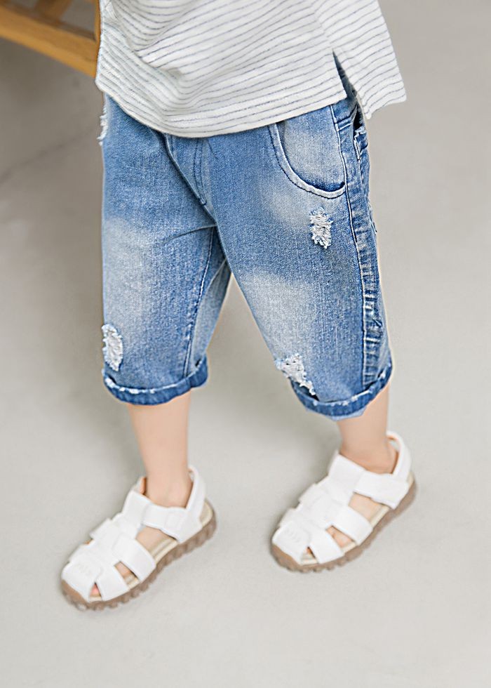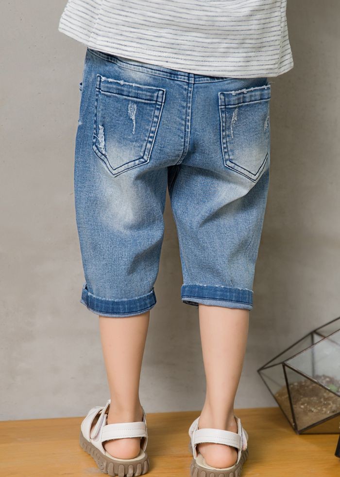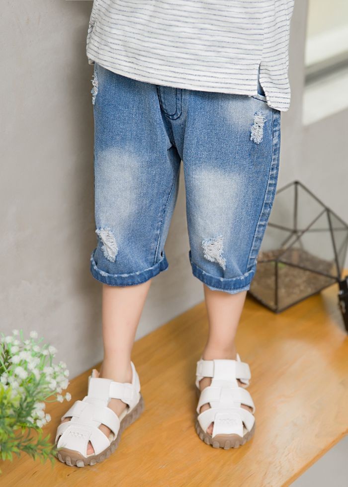 【製品仕様】■商品説明カジュアルダメージ加工楽チンなウエスト総ゴムデザインこれからの季節に重宝するハーフ丈パンツ! ■サイズ/寸法平置採寸 【90】ウェスト:25cm ヒップ:33cm 総丈:41cm 【100】ウェスト:26cm ヒップ:35cm 総丈:44cm 【110】ウェスト:27cm ヒップ:37cm 総丈:47cm 【120】ウェスト:28cm ヒップ:39cm 総丈:50cm 【130】ウェスト:30cm ヒップ:42cm 総丈:53cm■素材/材質デニム■色ブルー