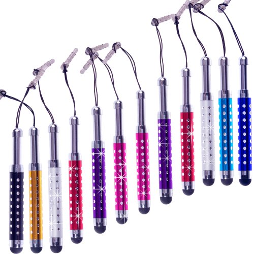 -. Title : Stylus Pen Bundle - 12 Universal Adjustable Stylus Pens with Bling Rhinestones and Anti-Dust Plug Attachments plus 1 ECO-FUSED Microfiber Cleaning Cloth