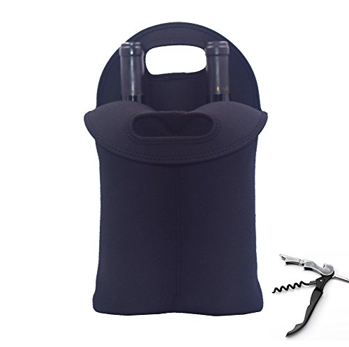 Neoprene Two Bottle Wine Tote Bag Carrier Holder Cooler Sleeve for Champagne / Wine / Beer / Soda / Cider Bottle (1, Black)
