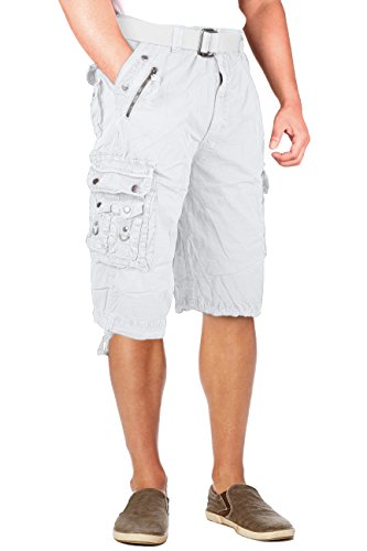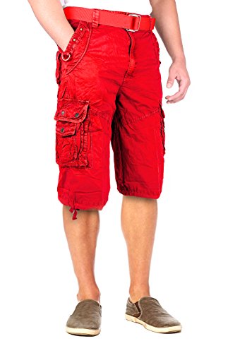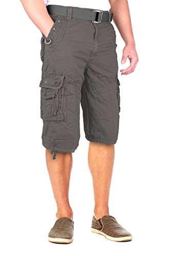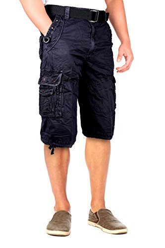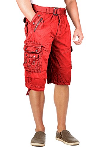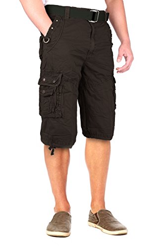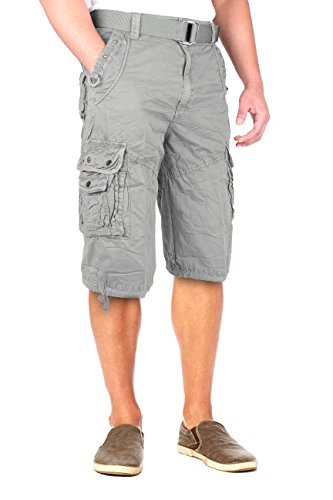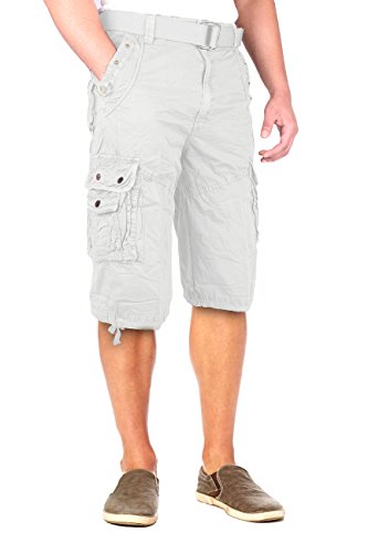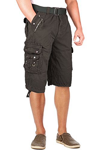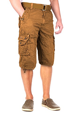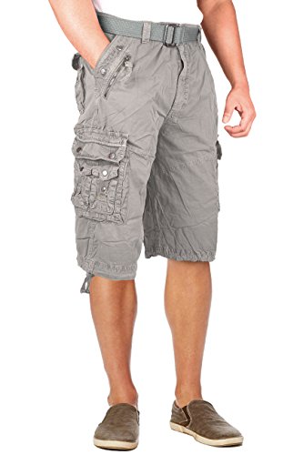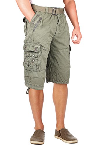 North 15 Mens Belted Cotton Military Style Multi Pocket Cargo Short