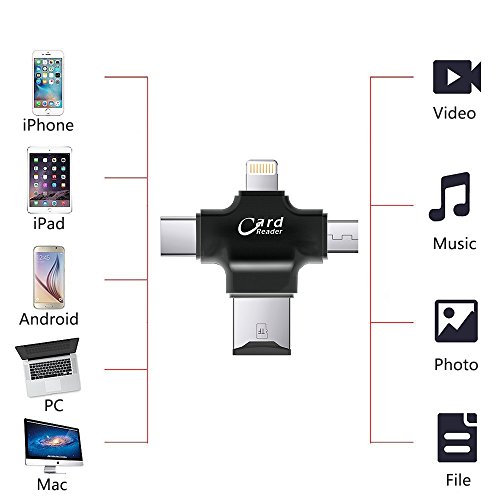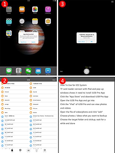 PLUG & PLAY: No need Jailbreak for iOS system. You can transfer photos, videos, musics and files from iPhone, iPad, iPod, Mac, PC, Type-C devices and Android devices to TF card easily and fast.