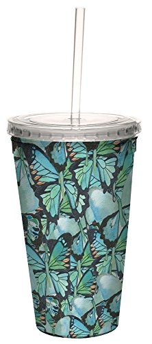 Tree-Free Greetings 35477 Shell Rummel Amazing Blue Butterflies Double-Walled Cool Cup with Reusable Straw, 16-Ounce
