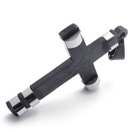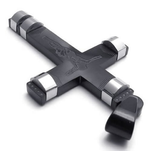 -. Title : KONOV Stainless Steel Jesus Crucifix Cross Mens Necklace Pendant, Black, 24 inch Chain