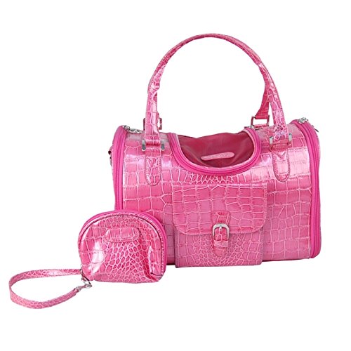 (Anima)/Pet Supplies/Carriers Travel Accessories/DIRECT FROM USA/Dog Cat Faux Crocodile Pattern Pet Carrier - Pink - Medium