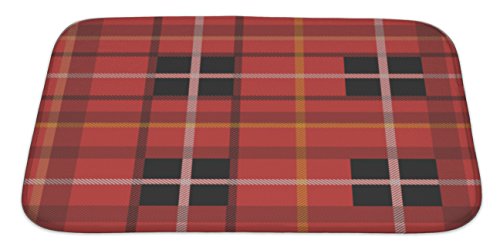 Gear New No Slip Microfiber Memory Foam Red Plaid Pattern Bath Rug Mat, 34" X 21"