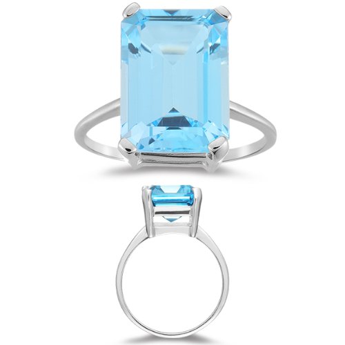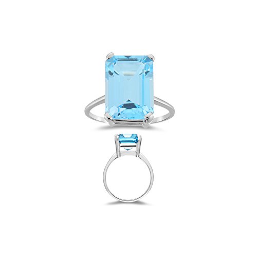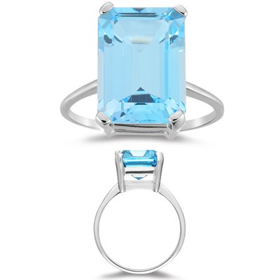 -. Title : 8.50-9.00 Ct 14x10 mm AAA Emerald Sky Blue Topaz Solitaire Ring-14KW Gold