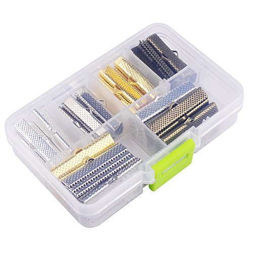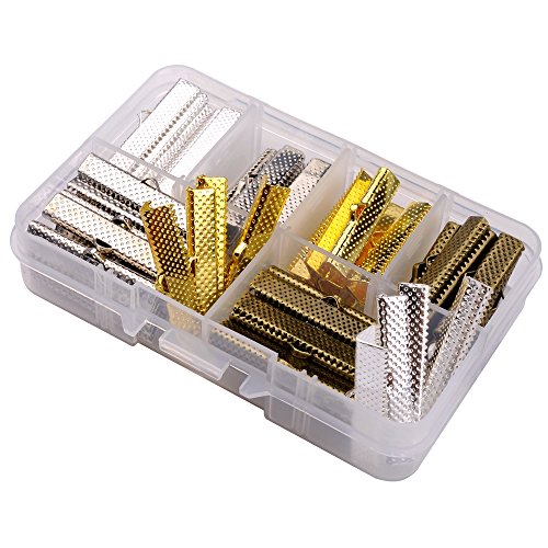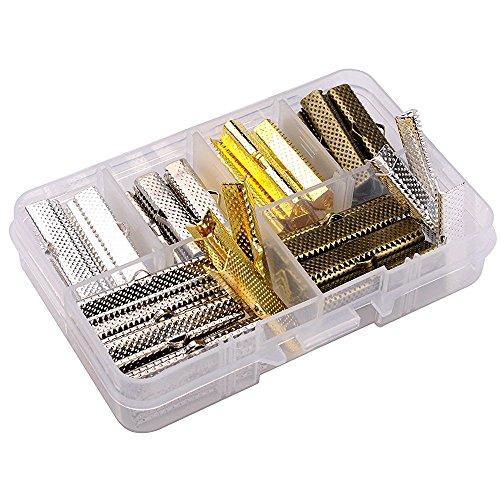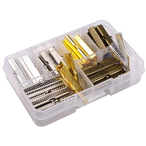 In A Box(80pcs/box) Kit with Mixed Color 30mm and 35mm Ribbon Bracelet Bookmark Pinch Crimp Clamp End Findings Fasteners Clasp Cord Ends Leather Crimp Ends Jewelry Making Findings