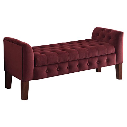 -. Title : Tufted Lift Top Storage Bedroom Bench & Settee in Rich Berry Merlot