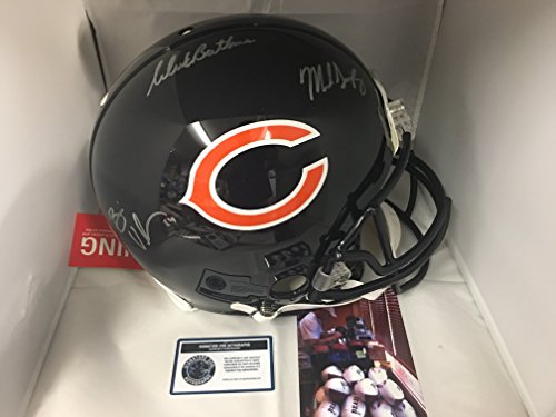 Brian Urlacher Dick Butkus Mike Singletary Triple Autographed Signed Chicago Bears Full Size Proline Authentic Helmet Mounted Memories Urlacher Holo Sig Dog COA