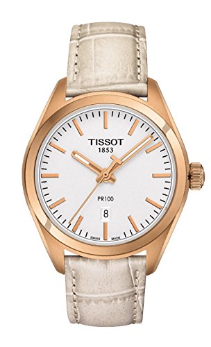 -. Title : Tissot PR 100 White Dial Gold-Tone SS Leather Quartz Ladies Watch T1012103603100