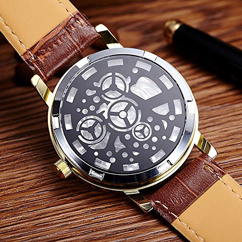 【퍼팩트 인생】손목시계 초박형 경량 30M 방수 손목시계 가죽 벨트 레더 아날로그 클래식 맨즈 고급 파쇼 아날로그 시계 (투조(투각)【2】)